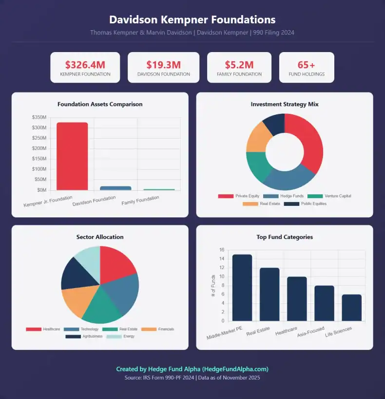 According to the 990-PF for 2024, which was filed in November 2025, the Thomas L. Kempner Jr. Foundation had $326.4 million assets at the end of the year. The 2024 990-PF for the Marvin H. Davidson Foundation was also filed in November 2025, and it reveals that the foundation had $19.3 million in assets. The Marvin Davidson Family Foundation had $about $5.2 million in assets at the end of 2024, according to its 990-PF.
