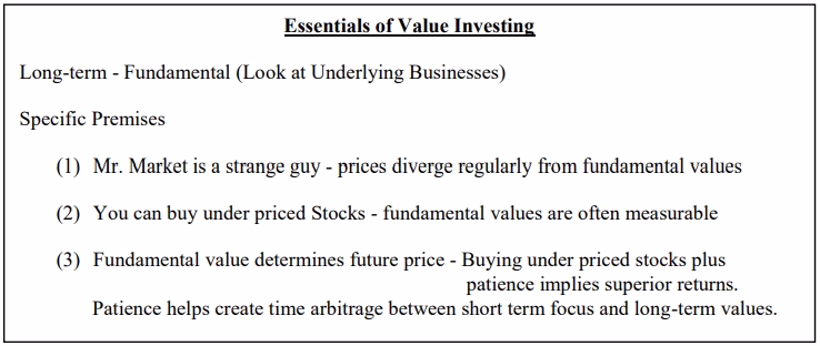 Value Investing (“VI”) rests on three key characteristics of financial markets: