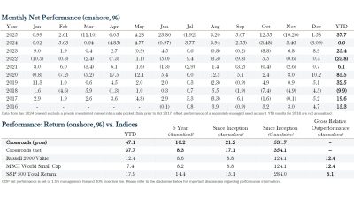 Crossroads Capital Up 37.7% In 2025, 21.2% CAGR ITD