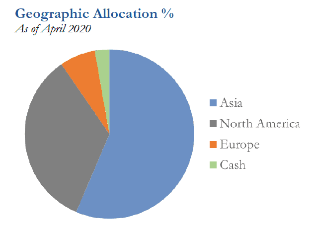 Our geographic exposure remains largely the same as before. The majority of our investments are concentrated in Asia – currently comprising 56% of the portfolio. North America makes up 34%, and Europe and Cash comprise the rest.