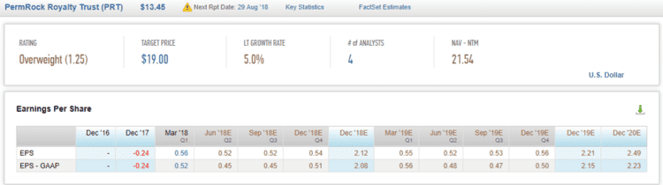 PRT is relatively inexpensive compared to its income and earnings power. For example, the following charts show forecasts from the 4 Wall Street analysts currently covering PRT (new small caps like PRT don’t usually get much coverage).